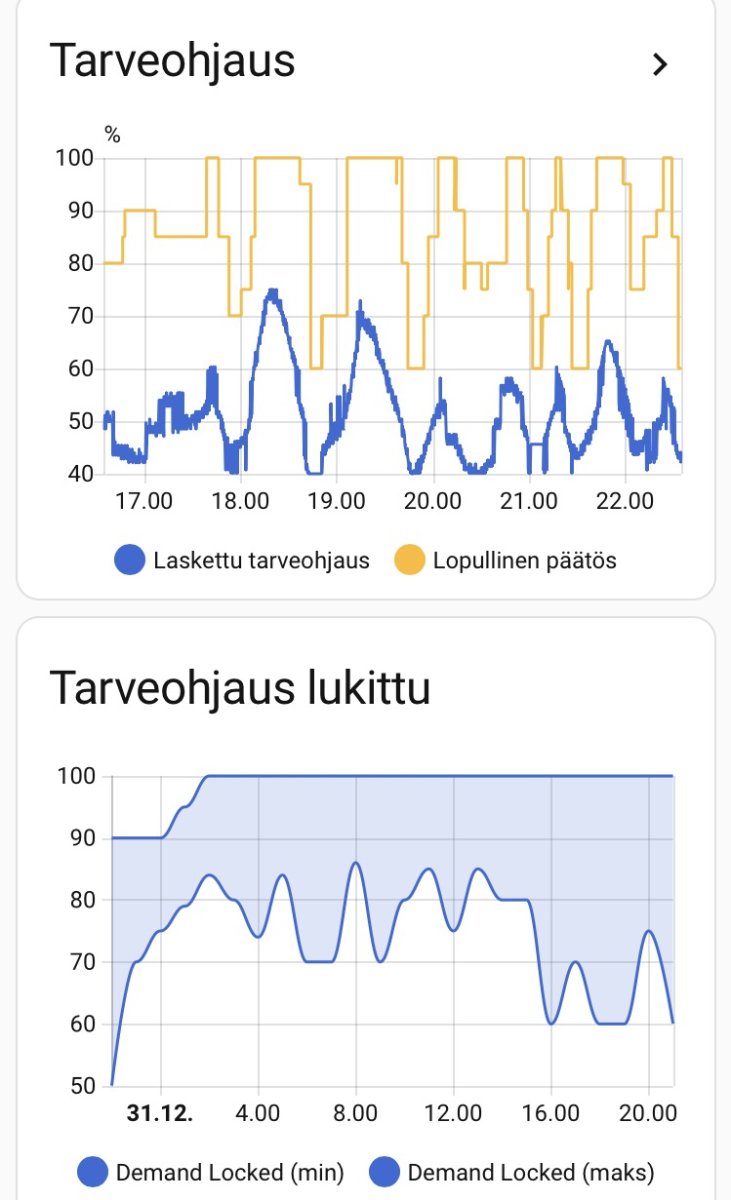 Nuo on ihan oman tahdon mukaan muutettavissa ja varmasti joutuu kalibroimaan omaan huusholliin sopiviksi. Demandin säätöön kyllä kannattaa laittaa hystereesit ettei säätö jumppaa, tuossa LDC:ssä on aikaraja ja alaspäin vaaditaan min 10% siirto, ylöspäin 5%.