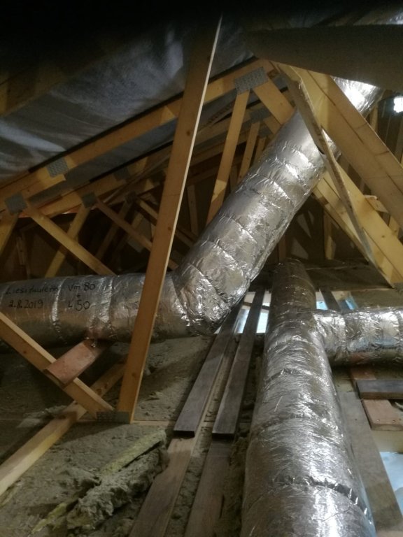Tuossa yksi esimerkki. Tota vois ehkä piisata yksikin kerros, 30mm voi laittaa kaksikin. Yhteen kohteeseen meni 60mm paloeriste+ 2x 50mm lämpöeriste nousuun. Tässä kohteessa menee 80mm paloeriste+30mm lämpöeriste missä nyt olen hommaillut.