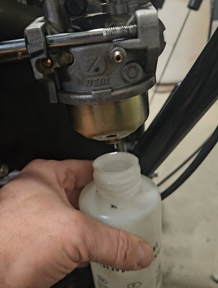 Kun kerran tankin suodattimessa oli ilmeisesti tuketta, löytyy sitä varmaan myös letkuista ja uimuriventtiilistä. Voisi nyt ensiksi tutkia ottamalla kaasuttimen pohjan pois ja antamalla valua vaikkapa pienen letkulla varustetun suppilon kautta kanisteriin, että polttoaine juoksee vapaasti, kunnes tankki on aivan tyhjä. Kaikki kaasuttimen suuttimet kannattaa puhdistaa perin juurin paineilmalla ja liottamalla tms. Kannattaa myös tutkia kohoventtiilin sulkeutumismekanismin toiminta perin juurin (so. ettei jumitu kiinni).