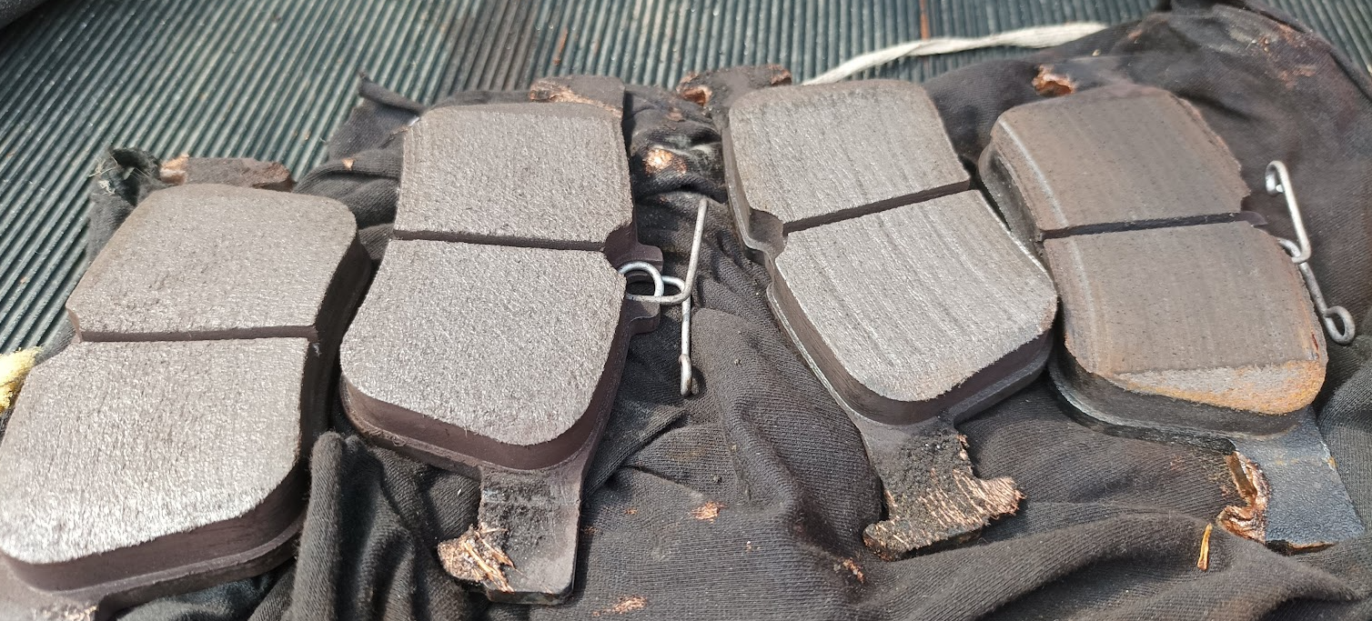 Vanhojen paljoen taustalla oli tuollaiset ohuet iralliset peltiset läystäkkeet (värinänvaimmennukseen). Laitoin ne nyt paikalleen, ne eivät olleet aiemmin paikallaan. Uusissa paloissa on lisäksi siellä taustalla vaimennusmassaa, jota vanhoissa ei ole.Jarrupalaan liittyen, sen takana voi tietty olla jotain muuta, joka on niin jostavaa, että se jättää sen palan hankaamaan kun se normaali pienen pieni palautusvara ei riitä sitä tyystin vapauttamaan.