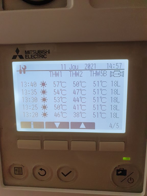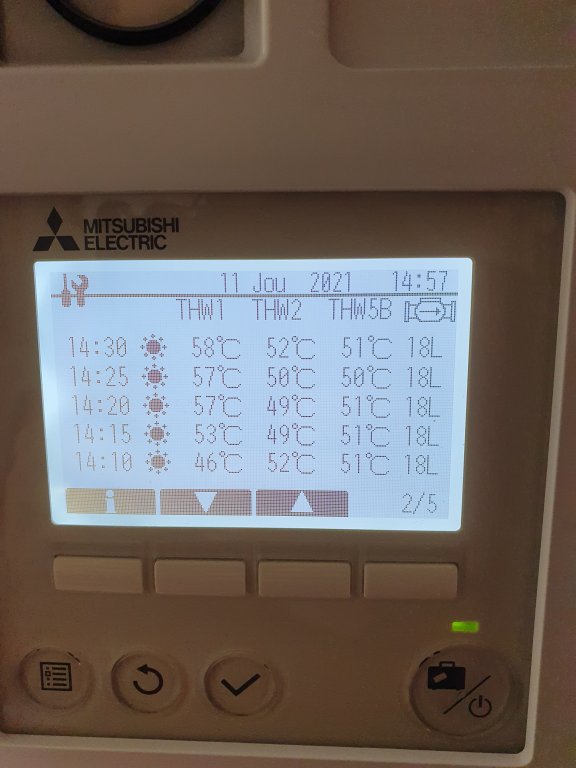 Vastusten käyttö näkyy kyllä olevan todella kitsasta. Vaikuttaa vähän siltä, että niitä säästetään vasta siihen, että menovesi ei nouse tarpeeksi ilman tai kun pakkasraja tekee ulkoyksikölle stopin. Vieläkin tekee yli 50C käyttövedenkin ilman vastuksia.