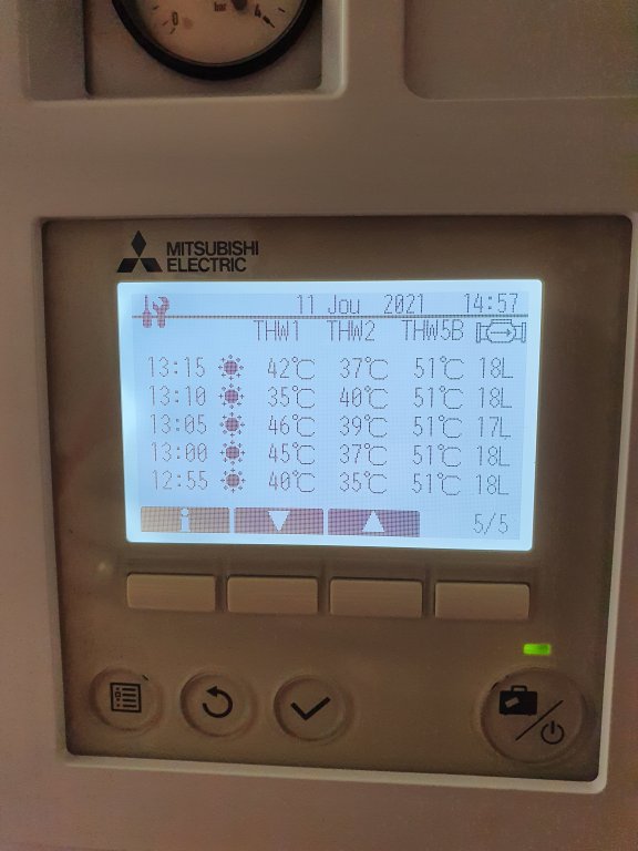 Täällä on ollut jo muutaman kerran juttua kaukosäätimen / sisämittauksen toiminnasta sähkökatkojen jälkeen. Kaukosäädin on laitepaketin mukana normaalisti tuleva Mitsubishi PAR-WT50R-E. Tuon avulla laite kykenee niin sanottuun oppivaan sisälämpötilan mittaukseen, jolloin lämmitysverkostoon osataan lähettää kussakin lämpötilassa juuri sopivan lämpöistä vettä tasaisen sisälämpötilan ylläpitämiseksi.