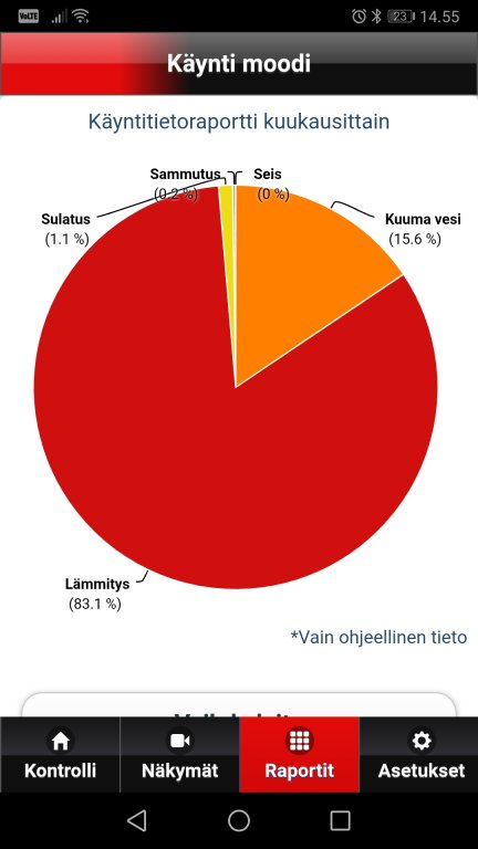 Minulla saman suuntainen raportti. Onko sinulta legionellan esto pois päältä asetuksista? Minulla sekin näkyy tuossa raportissa.Viimeisen kuukauden käynti Mode. Ei paljon huilaa pumppu