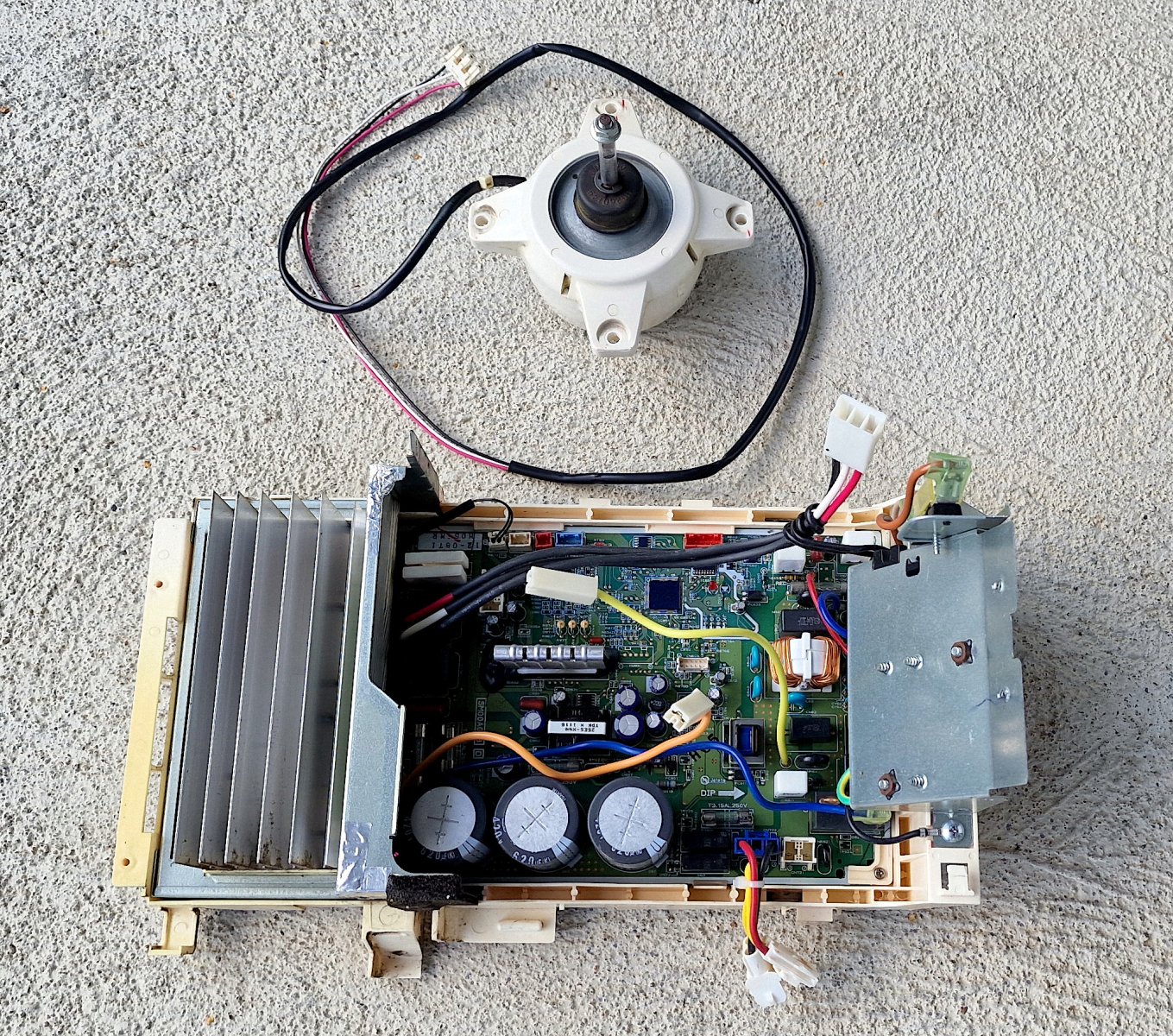 Myydään Mitsubishi FD-35 ulkoyksikön piirikortti ja puhaltimen moottori