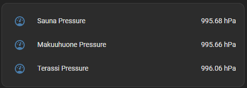 Laitoin liitteeksi kuvat ensimmäisen ja toisen asunnon mittauspöytäkirjoista. Asuntojen kolme, neljä ja viisi mittauspöytäkirjat ovat arvoiltaan lähes identtiset, kuin asunnon kaksi (ml. ilmamäärän teho %:ssa). Lisäksi liitin kuvan laitteen nykyisistä arvoista ja mittaustuloksista. Sen verran ymmärrän, että asunnon pitäisi ilmeisesti olla lievästi alipaineinen. Minulla on asunnossa muutama RuuviTag ja yksi ulkona. En tiedä riittääkö RuuviTag:n mittaustarkkuus todentamaan tuota alipaineisuutta, mutta tulkitsen, että niiden arvojen mukaan asunnon pitäisi olla alipaineinen?
