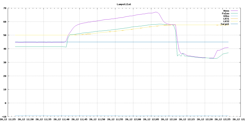 Nuo siis kaikki legionella-ajoja, jossa lähtötilanteessa varaajan keskiosassa 50-57 C ja lopussa 65 C.