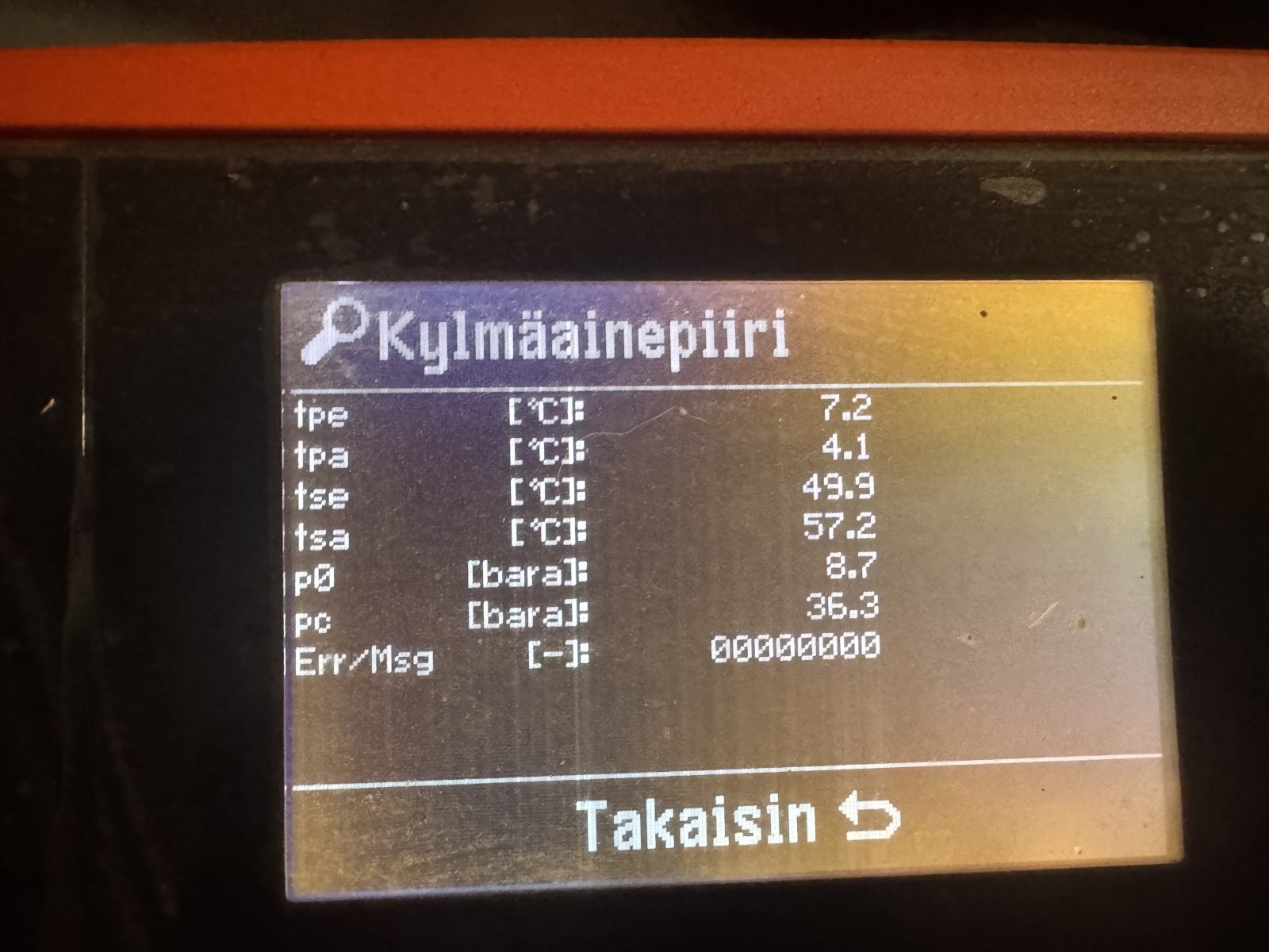 Niin tätä asiaa itsekin pohdin. Laite käyttäytyi mielestäni oudosti sikäli että se sai pidettyä kuumakaasun 80 asteessa hyvin suurella virtaamalla vaikka tuotti erityisen kuumaa vettä eikä höyrystinkään ollut mahdottoman kylmä edes. Kompura kulutti sähköä tavallista enemmän eli varmasti lämmitti jotain. Olisiko se sitten peräti höyrystänyt kylmäainetta... pitäisi varmaan tutkia vielä noita muita lämpötiloja mitä laitteesta saa.