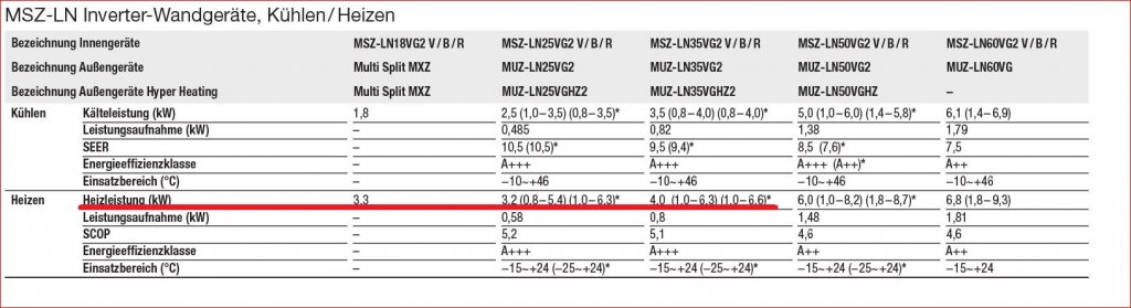 Eli keskiarvo LN25 3.2 kW LN35 4 kW, dramaatista eroa ei ole. Jos 1kW rrittää n. 30 neliö, se näyttää että LN 25 on tässä ilman reservia ja/tai puhallin toimi korkeammalla nopeudella.