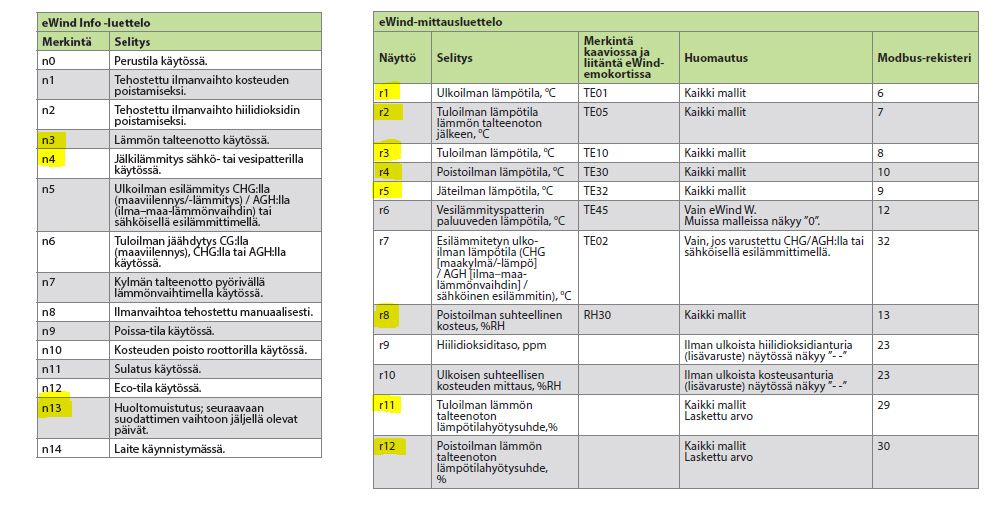 Lisään kuvaliitteeksi tuon IV-laitteeni parametritaulukon (keltaisella ne arvot, mitä täällä on käytössä). Toisessa kuvassa on sulatuskuva huurteisesta kennosta (palatakseni takaisin ketjun otsikon aiheeseen ;-). Tämä LN25 laite tekee edelleenkin sulatuksiaan hyvin harvakseltaan anturin siirron jälkeen eli vasta joskus 2-3 h välein. Pakkasen kiristyminen ei ole sotkenut mitään tässä suhteessa. Hiukan ulkoilman kosteudesta riippuen tuonne ulkoyksikön lamelleihin kertyy oikeaa huurrettakin sulateltavaksi, muttei aina. Olen näet seisonut koneen vieressä, kun se on tehnyt tuollaisen "kuivasulatuksen", missä ei tipu vettä pulkkaan lainkaan, mutta tuon sulatuksenkin se on tehnyt vasta hyvin pitkän ajan kuluttua aiemmasta sulatuksesta. :cool: