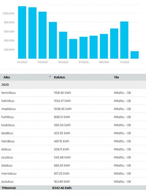 Edellinen talvi 2019-2020 toikin sitten mukanaan uuden Mitsubishi LN-25 ILP:n (3/2020), jota en tuolloin ennättänyt kevättalvesta paljonkaan seuraamaan. Annoin lähinnä laitteen toimia itsekseen ja seurasin tuota sulatussykliä edellisessä viestissäni kuvaamallani tavalla. Kevät oli sitä paitsi aikainen ja lämmin, jos oikein muistan. Viimeisimpänä energian vuosikäyttöön vaikuttavana remonttina teetimme kevään Korona-aikaan (5/2020) ikkuna- ja oviremontin, jossa vaihdettiin alkuperäiset 1987 ikkunat nykystandardien mukaisiin selektiivilasi-ikkunoihin. Nyt talo alkaa olemaan suunnilleen siinä energia-kunnossa, mitä voi olettaa sen olevankin noilla laitteistokalustuksilla ja Mitsu LN25 pääsee näyttämään kyntensä energiapihinä pumppuna. Oletus on, että jatkossa päästään selvästi alle 10000 KWh lukemiin sähkön vuosikulutuksessa. Energiayhtiön vuosiennuste taisi näyttää jotain 9750 KWh lukemaa, mutta tälle vuodelle taitaa riittää jokin 9400 KWh vuosilukema, jos joulukuussakin riittää näitä nollakelejä tänne etelään.