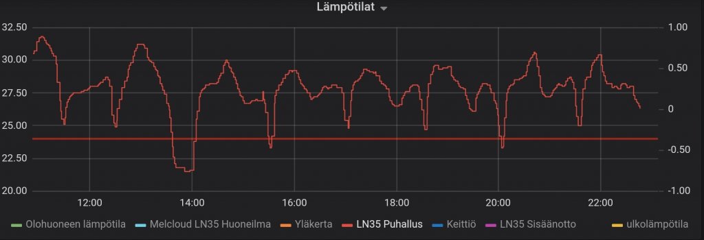 Tämän perusteella päättelen nyt (olettaen, että firmis toimii suunnitellusti), että joko sulatusanturi on häiriintynyt tai huovat ovat märät. Yläkautta kurkatessa sulatusanturissa ei näkynyt kyllä mitään omituista, ja tuon yläputken rivi on kyllä se ensimmäinen joka sulaa. Matot taas vastaavat aika suurelta pinta-alalta putkistoon häiriten niitä mikäli ne ovat umpijäässä, mutta aika vaikea olisi uskoa niiden vaikuttavan noin paljoa.