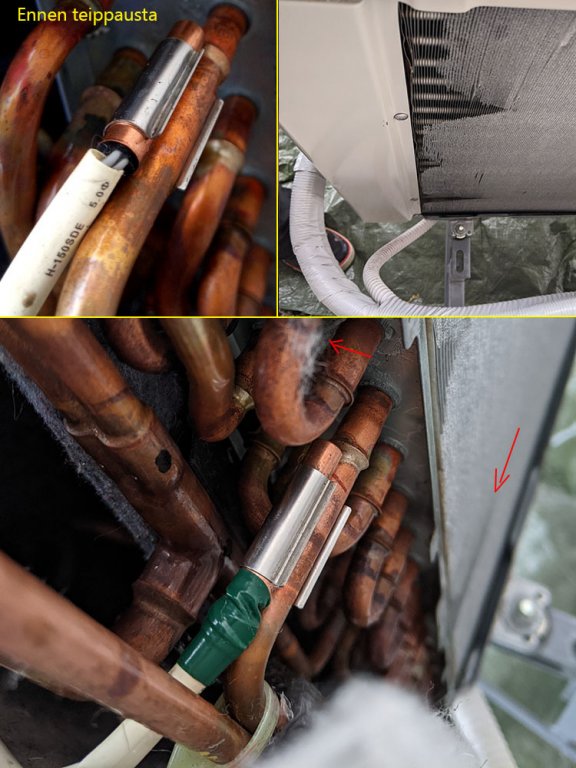 Tiedoksi muillekin sähköjohtoja karttaville tuunaajalle, että mielestäni olisin voinut tehdä defrost anturin siirron sähköjohtoja irrottamatta ja pelkästään päätypeltiä raottamalla (irrotin kaikki päätypellin ruuvit). Alhaalta olisin voinut irrottaa defrost anturin ja ylhäältä olisin voinut nostaa anturin ylös anturin valkoisesta johdosta. Ainakin yläputkeen siirto olisi mielestäni onnistunut. En ajatellut olisiko saanut myös keskiputkeen. Kuvien perusteella todennäköisesti olisi onnistunut.