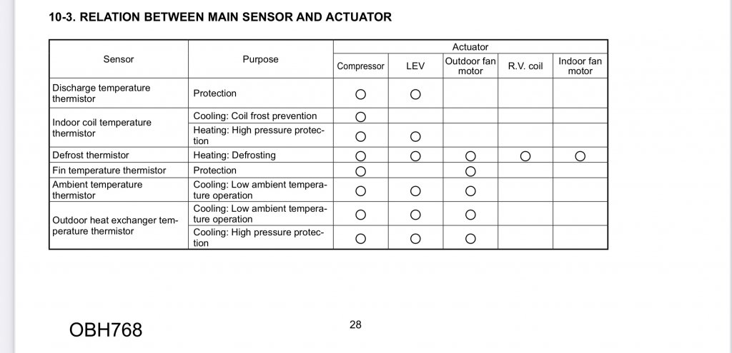 Service manuaalissa on kaavio antureiden käyttötarkoituksista. Outdoor heat exchanger temperature thermistor vaikuttanee vain jäähdytyksellä.
