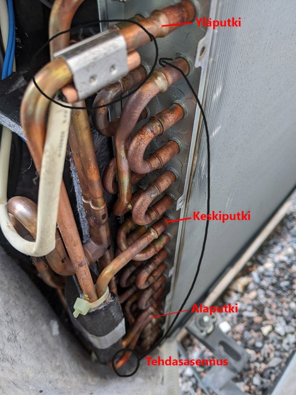=> Eli taitaa olla aivan sama mihin sulatusanturin laittaa noista punaisella merkityistä putkista (~alkuperäinen paikka).