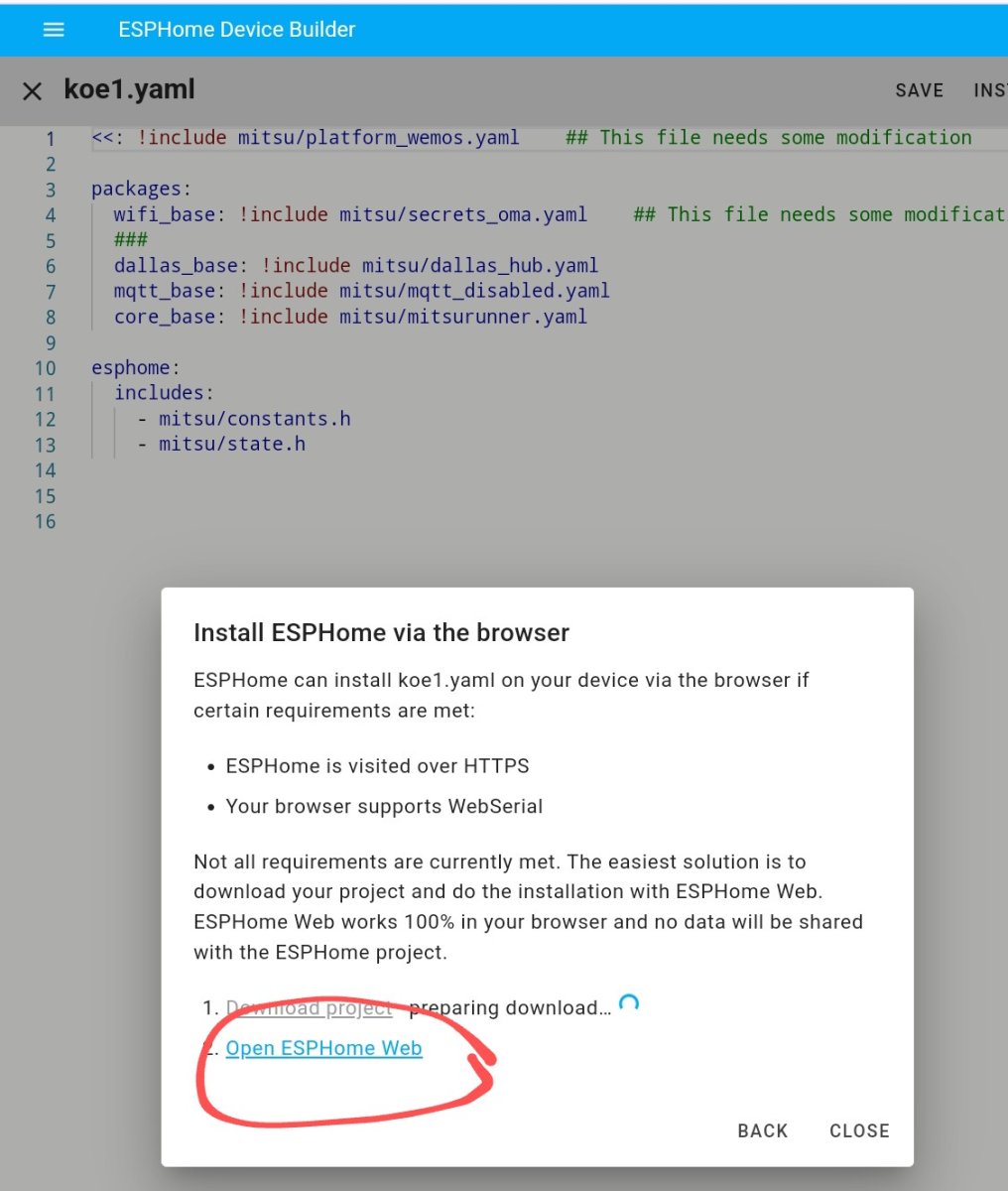 Ohessa päivitetty Mitsurunnerin softapaketti joka toimii sekä uudella että edeltävillä ESPHome versiolla. Enjoy!