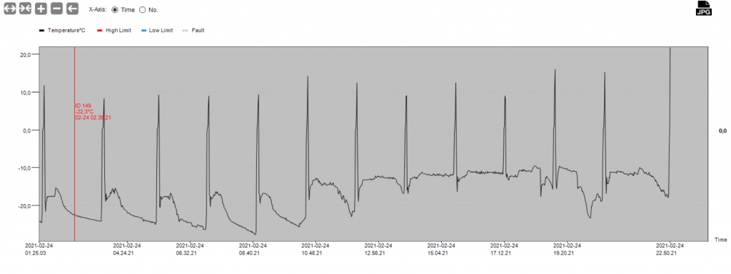 Laitetaan tähän vielä näkyville eiliseltä pidempi loggaus kun tallessa ovat. Loggausjakson alussa puhallus 3 ja pyynti 22 C ja n. 10:30 muutettu puhallus 2 ja pyyntinä sama 22 C, illalla tehdyt testailut selitin tuossa aiemmassa viestissä.