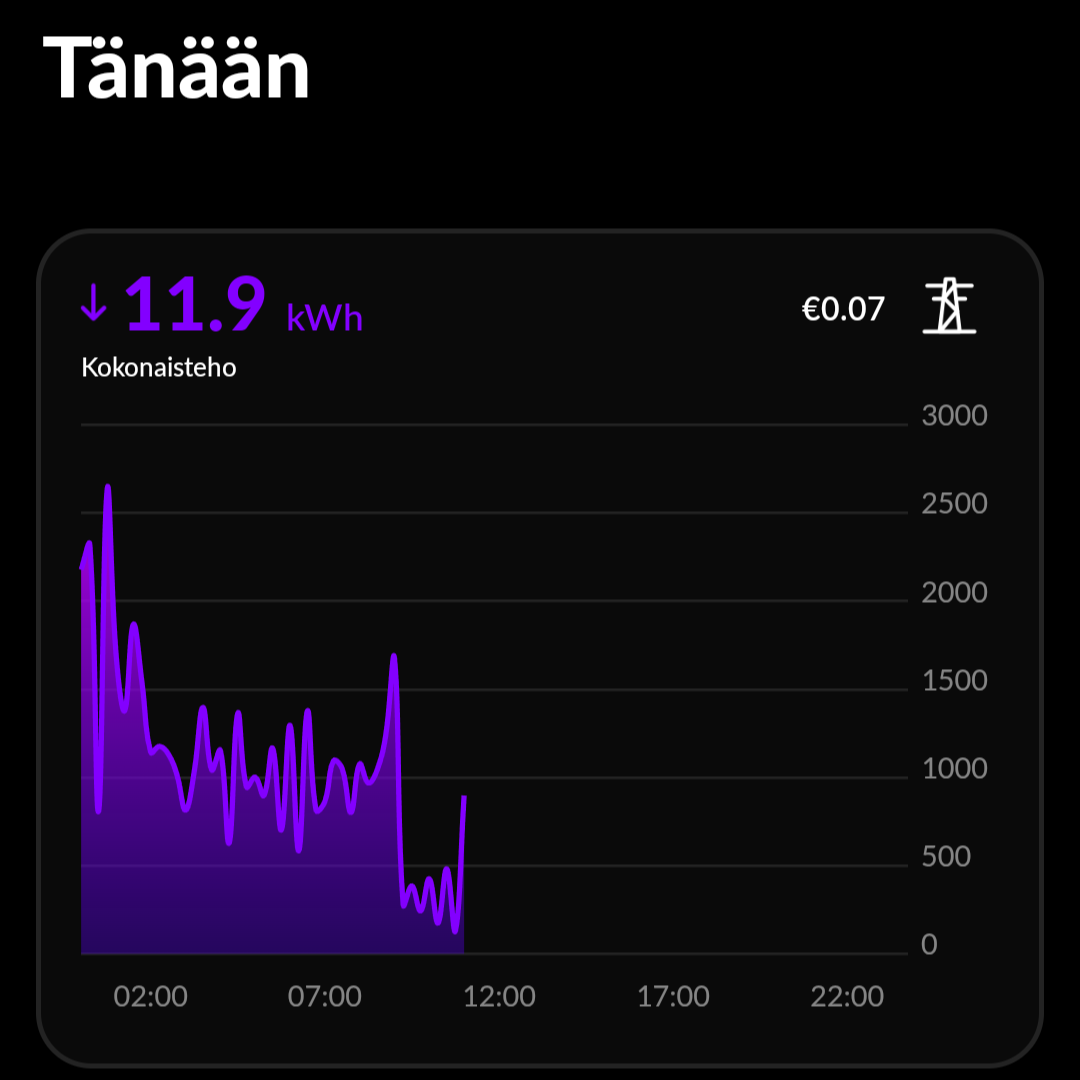 Jos haluaa oikeat lukemat suosittelen asennuttamaan esim Shelly 3EM-63T palikan ryhmäkeskukseen niin saa todelliset lukemat
