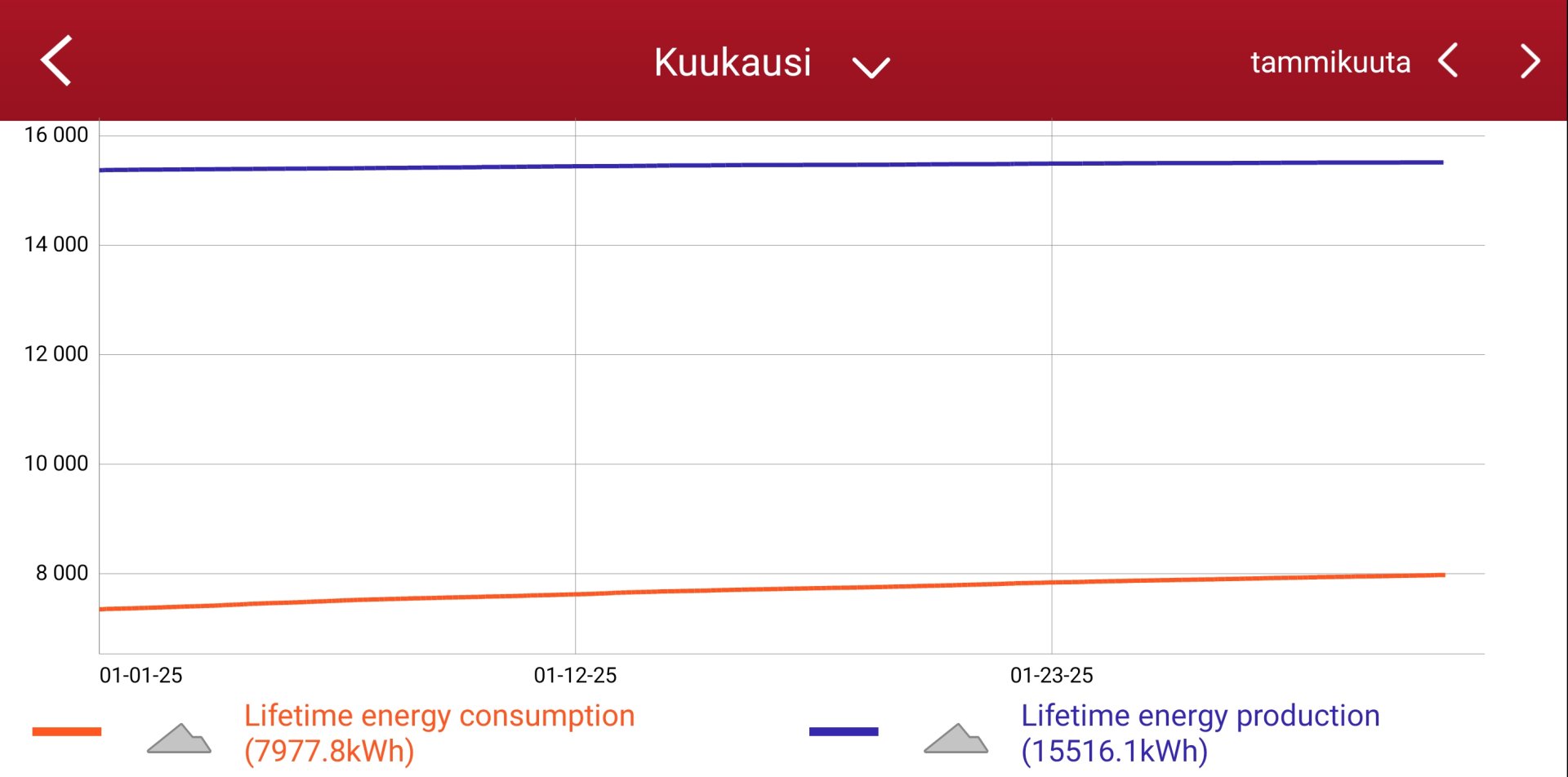 myUplink näyttämä energiankulutus