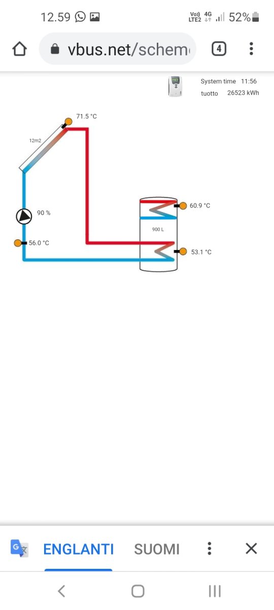 Lämmitysjärjestelmässä on sellainen ero että 2021 käyttövesi tulistettiin erillisessä 100 litran varaajassa ja tämä vuosi se on testimielellä tulisteltu 900 litran varaajan yläosassa 6 kW vastuksella.