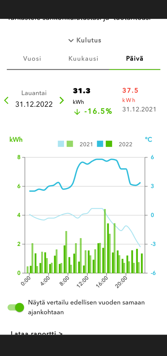 Liukuva 12kk kulutus 8925 kWh. En ikinä uskonut näkeväni 9000 alitusta. Tämän eteen kun ei olla pihistelty.