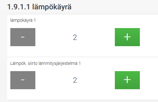 Aikaisemmin ajoin 2:lla mutta jostain syystä päätin muuttaa sen takaisin 3:n missä se on ollut alusta asti. Muistan lukeneeni, että 2+jotain tai 3 olisivat ne käyrät mitkä ovat hyvä lähtökohta vesikiertoiselle lattialämmitykselle, joka on joka huoneessa.