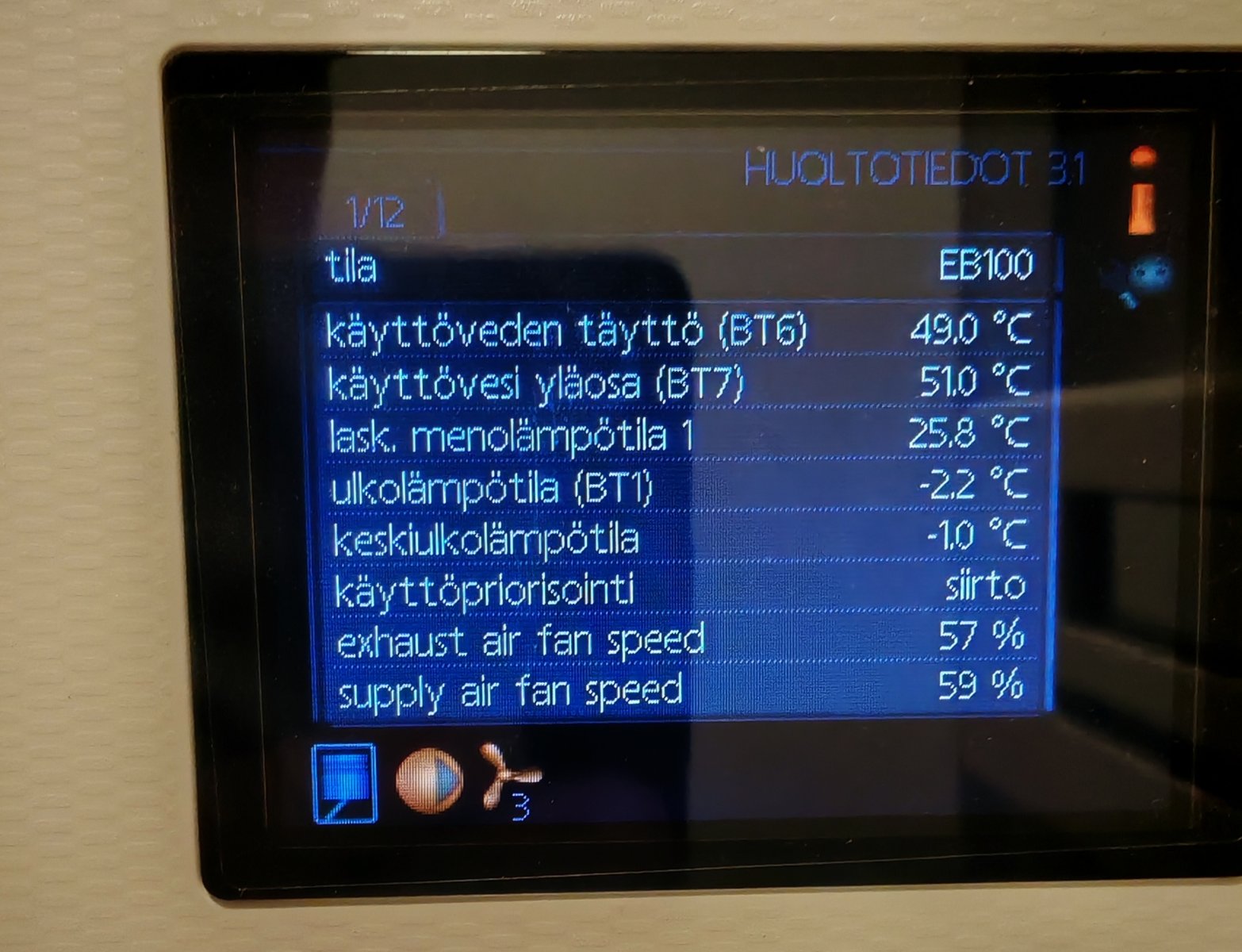 Olettaisin että RN1 venttiili on tehdasasetuksessa vielä, joten sen säätö taitaa sitten olla edessä. Taidan odotella että pakkasta on enemmän, jolloin voin säätää sen sitten kerralla koko talveksi.