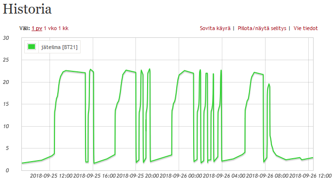 Asetin itsekin tuon lisäyksen pysäytyksen muistaakseni arvoon 5 ja kun laitteen asentanut suuri LVI-yritys kävi antamassa käyttökoulutuksen myöhemmin, niin heidän vahva mielipiteensä oli, että sitä ei ole syytä laittaa liian alas ja antaa kompuran rasittaa liiaksi. Se kun ei kuulemma ole koneen tarkoitus ja se lyhentää kompressorin elinikää entisestään ja ne säästöt sulaa siinä pidemmällä aikajaksolla katsottuna.