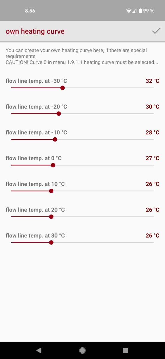 Juuri noin. Tuo Oma käyrä on pätevä tuohon hommaan, kun voi tosiaan kelien mukaan säädellä kohdilleen ajan kanssa.Ajattelin napata vihdoin lattian termarit pois ja jatkaa käyrällä. Eihän tuossa muuta ole kuin käyrä kuntoon, toimilaitteet irti ja piireihin jonkinlainen virtaus ja tämän jälkeen seurailla lämpöjä? Jos yksittäisen huoneen lämpötila ei tunnu sopivalta niin lisää/vähemmän virtausta ja jos koko kämppää tarvii säätää niin käyrän korjaus sillä koko käyrää ohjaavalla säädöllä? Ja jos kovemmilla pakkasilla jäähtyy liikaa niin käyrää jyrkemmäksi sieltä päästä? Alla tämän hetkinen - minimi tuo 26c joka säädetty pesuhuoneen mukaan sopivaksi.
