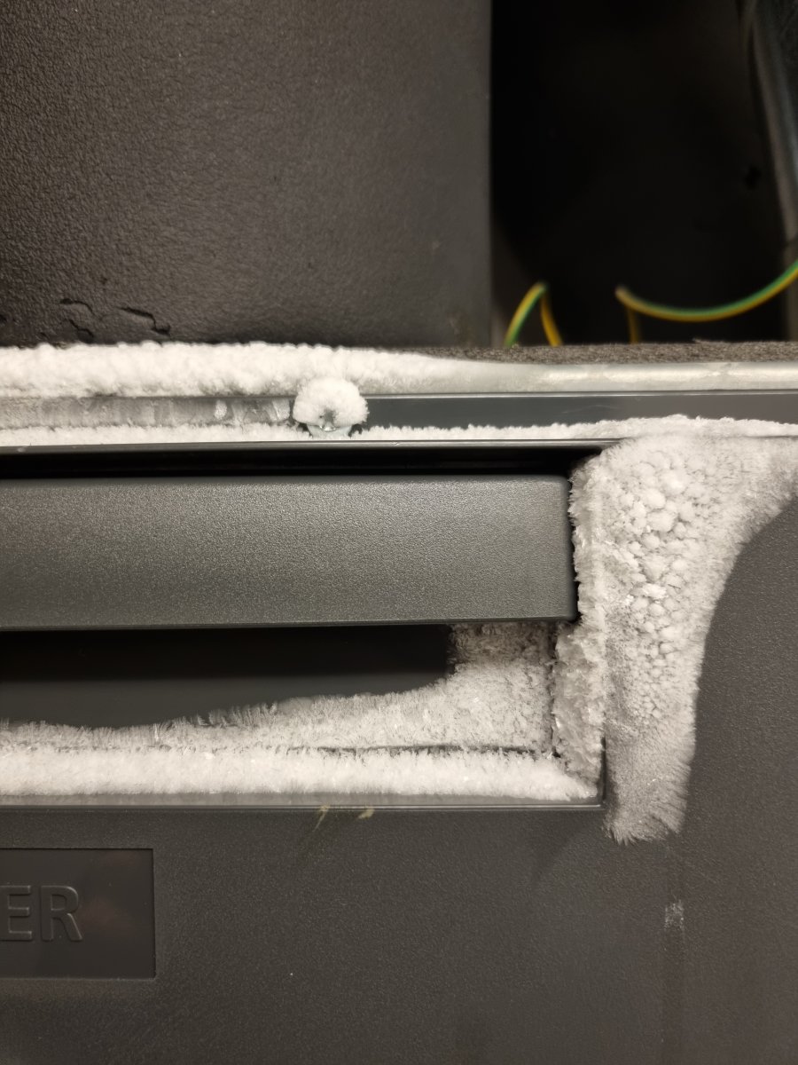 Olisi kiva kuitenkin keksiä jotain ratkaisuja tähän, koska aina on pieni pelon tunne siitä, että tuo huurre tuosta jonain kauniina päivänä taas sulaa siten, että se valuu tuonne koneen sisään ja kärväyttää koko härvelin ja se tulee kalliiksi. Nytkin kun katsoo tuota muovista etulevyä, on havaittavissa pieniä valumajälkiä jotka "pitäisi periaatteessa" ohjautua turvallisesti muualle, mutta meillä on tosiaan jo kerran käynyt jo hieman köpelösti tämän kanssa (katso aiemmat viestit tässä ketjussa).