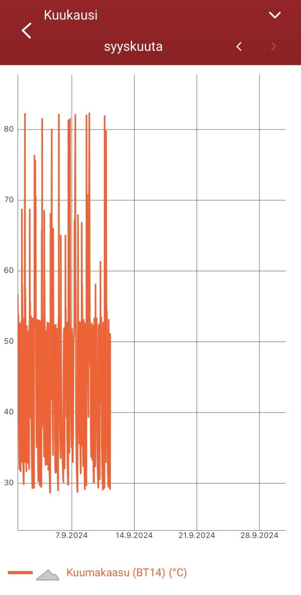 Kannattaa vertailla kuumakaasu vs menolämpötila tai kuumakaasu vs käyttöveden lataus. Samalla käyristä katsella että mikä on se kuumakaasun hälytyslämpötila.
