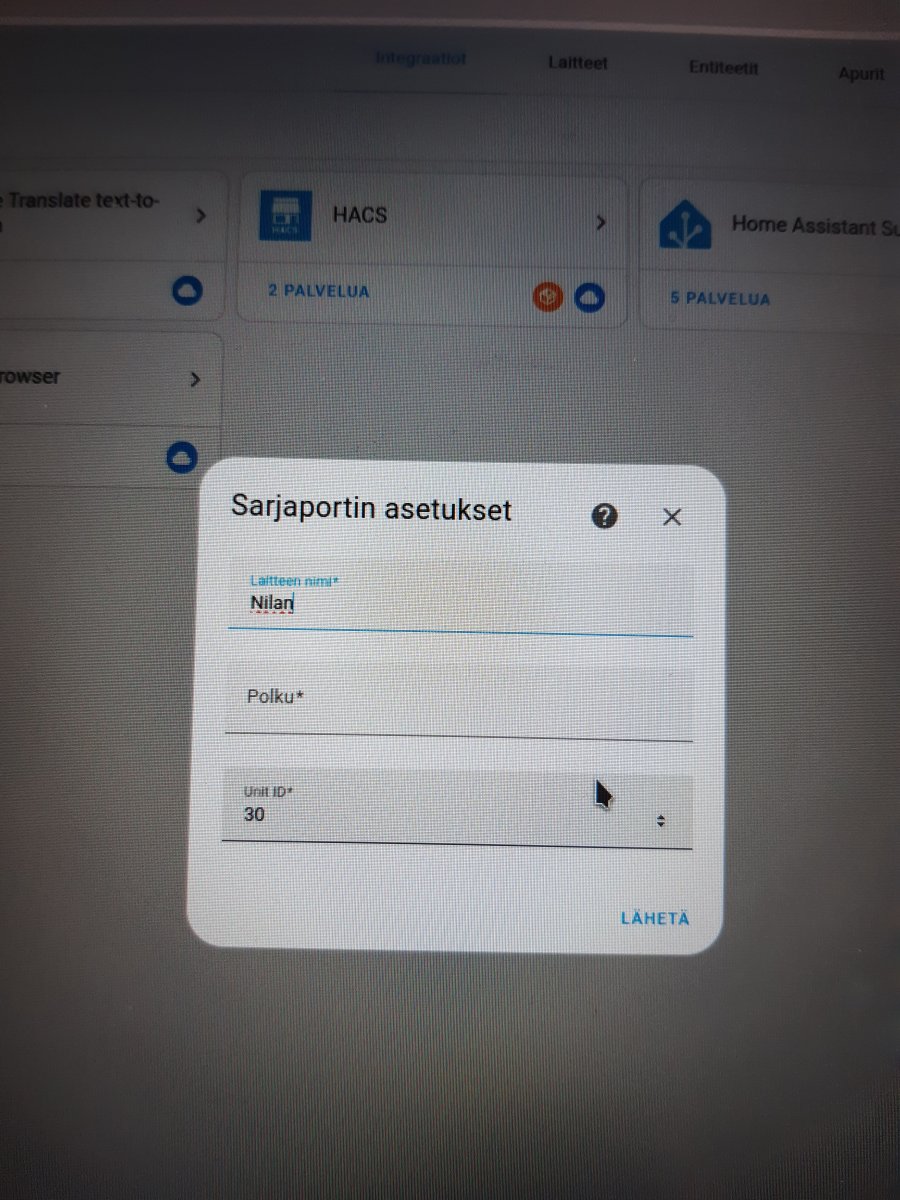 Itsellä kans Modbus adapteri mutta se on vanhassa läppärissä kiinni ja siinä Linux sekä home assistant.En oo niin tarkkaan perehtynyt mutta https://www.nilan.fi/miksi-nilan/tee-se-itse-etaohjaus-nilan-lampopumppuun/