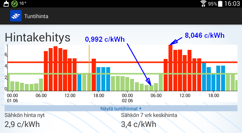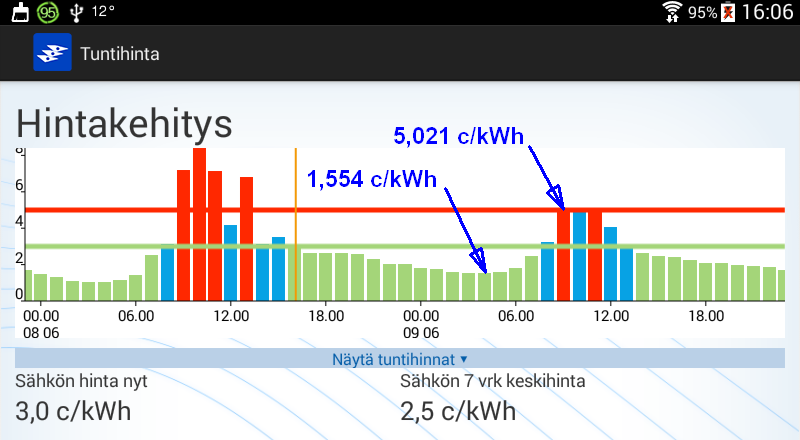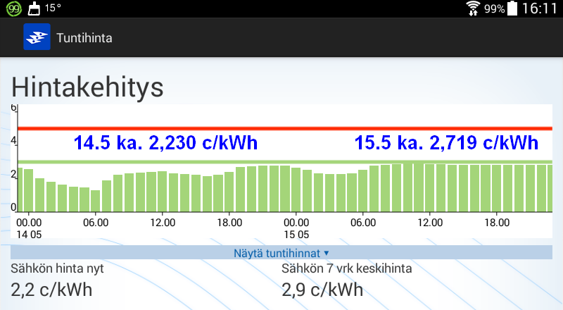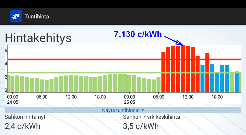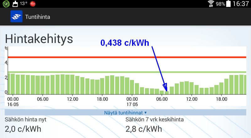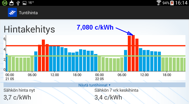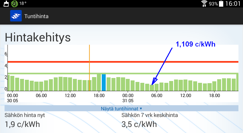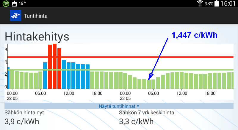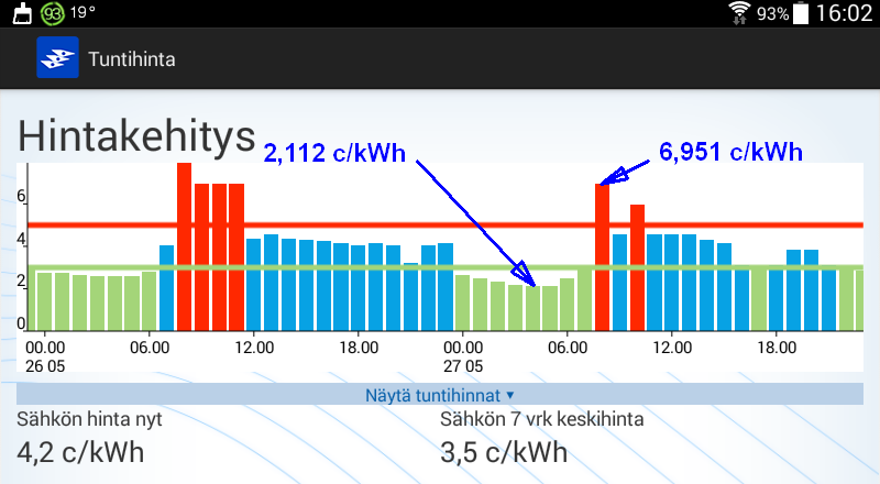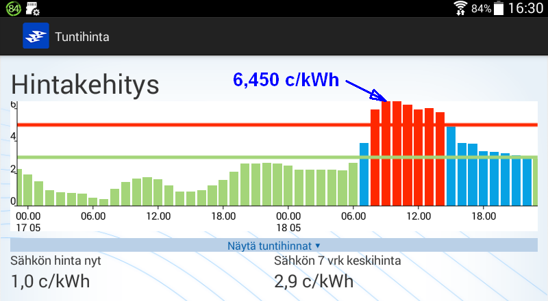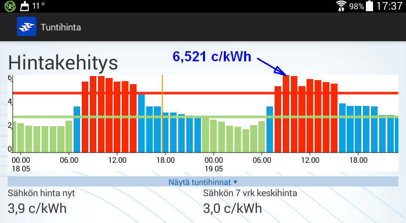 Koko huomisen vuorokauden hinta kuitenkin kohtuuden rajoissa.