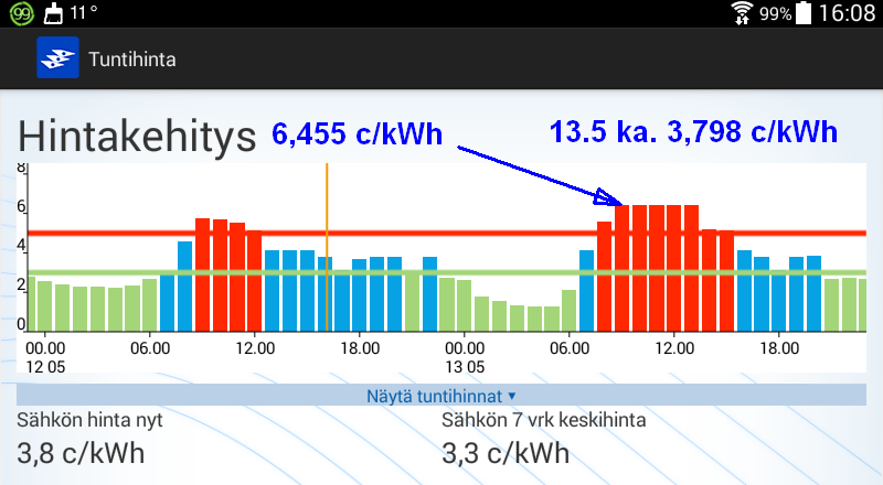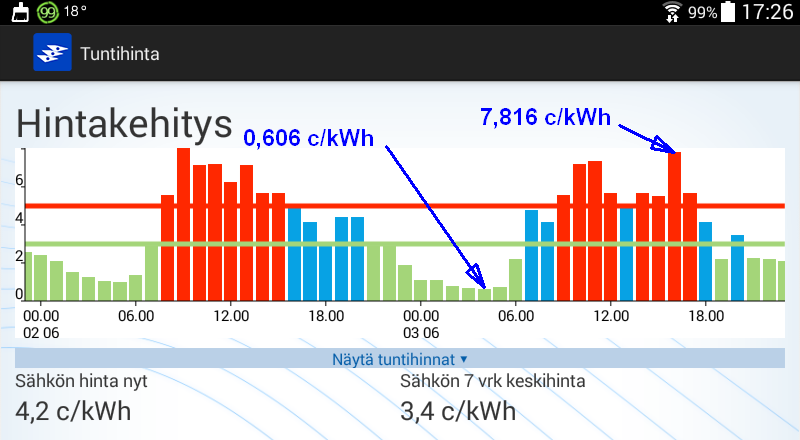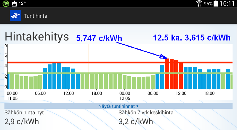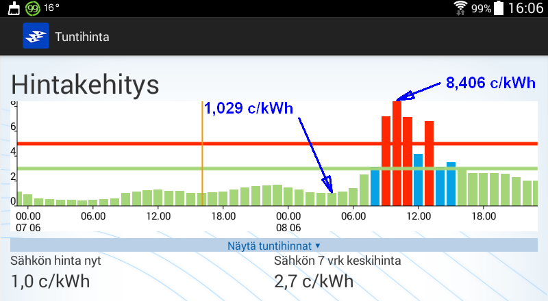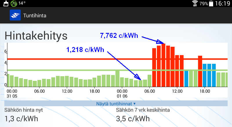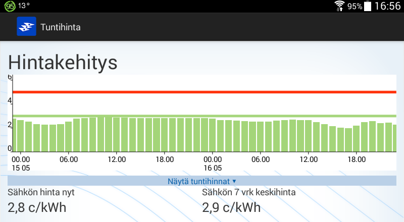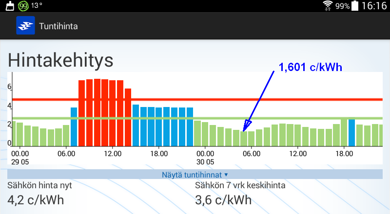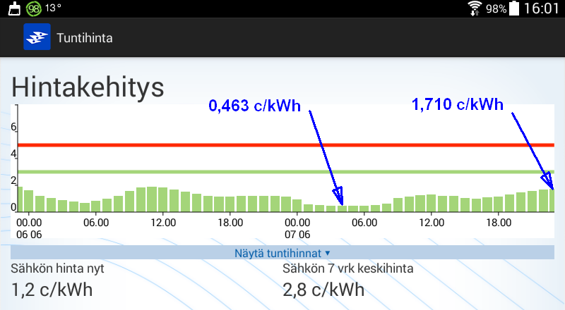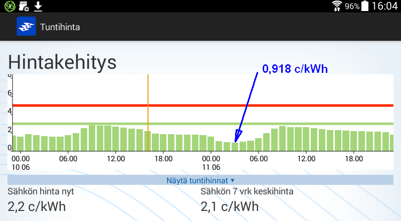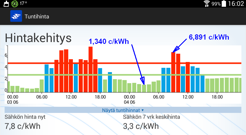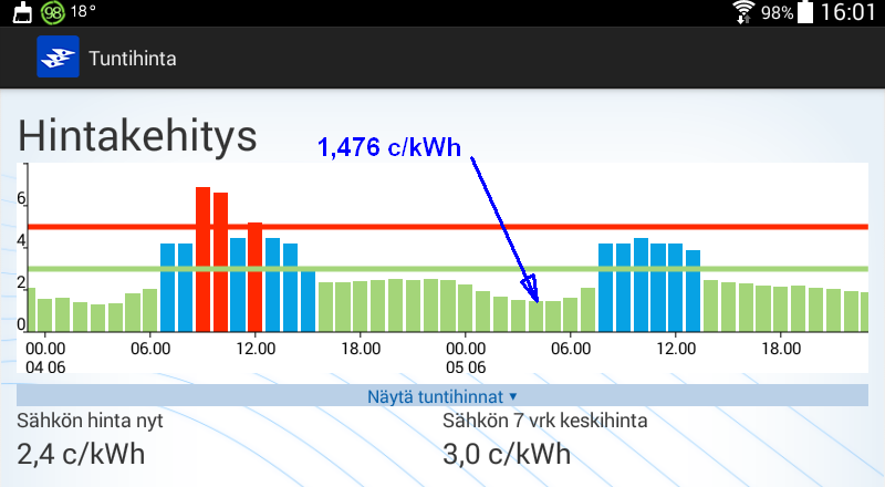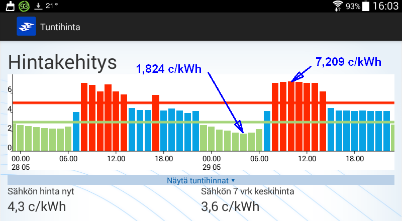 Koko huomisen vuorokauden hinta kuitenkin kohtuuden rajoissa.