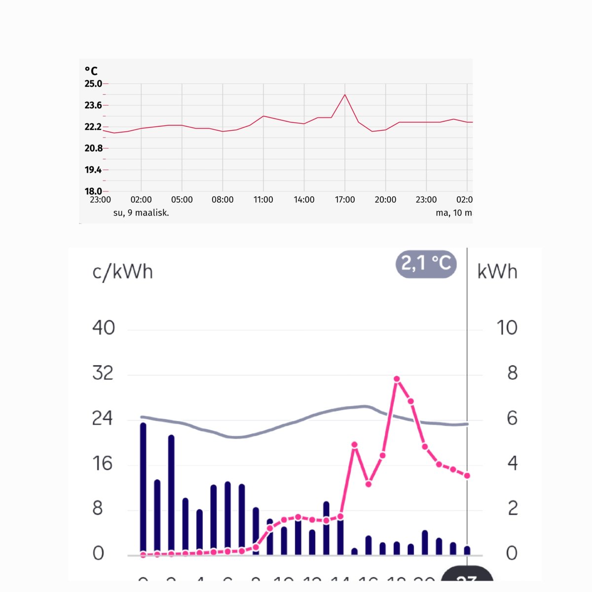 " on ylittynyt, mutta huomenna kulutetaan TAAS nollahintaista keskiyöltä alkaen ja keskihinta polkeentuu alas, näin ennustan.Puilla lämmitetty täälläkin ja keväinen auringonpaiste teki tänään kepposet; sisälämpö 25 C ja hikeä pukkaa niin kuin veikkasin aiemmin