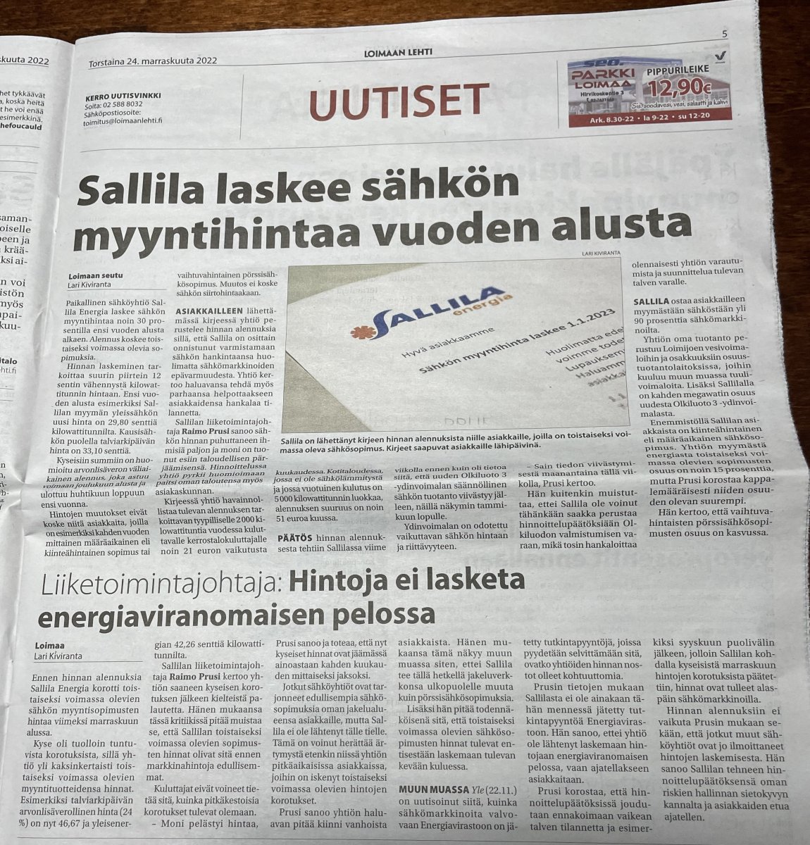 Loimaanlehti torstaina 24. marraskuuta 2022