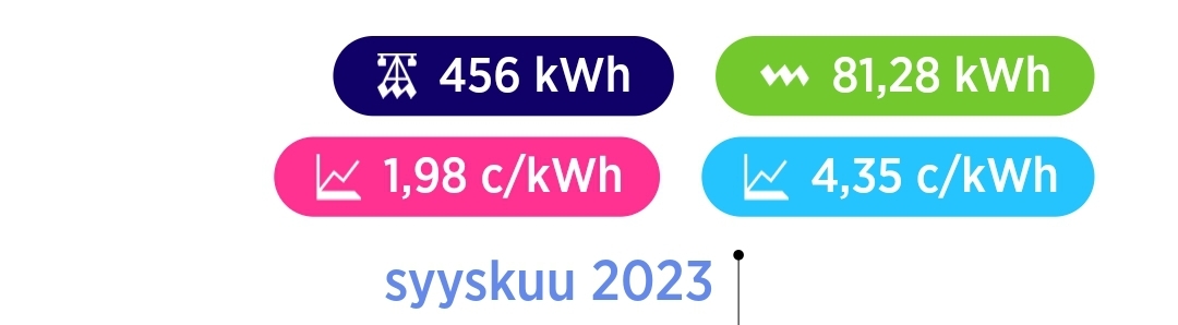 Ilman marginaalia (0,38 c) mutta alvilla 2,93 c/kWh. 3,36 c/kWh siis yhteensä tällä hetkellä … mutta äkkiäkös joku piikki vielä saadaan aikaiseksiTällä hetkellä syyskuun totetuma 3,82 snt/kWh sis marginaali.