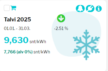 Hyvä että on halpaa, paitsi kun itse tuli otettua ylihintainen KV suojaksi kasinohinnoille.... eipä sekään konkurssia kyllä aiheuta kun sähköä ei paljoa kulu.
