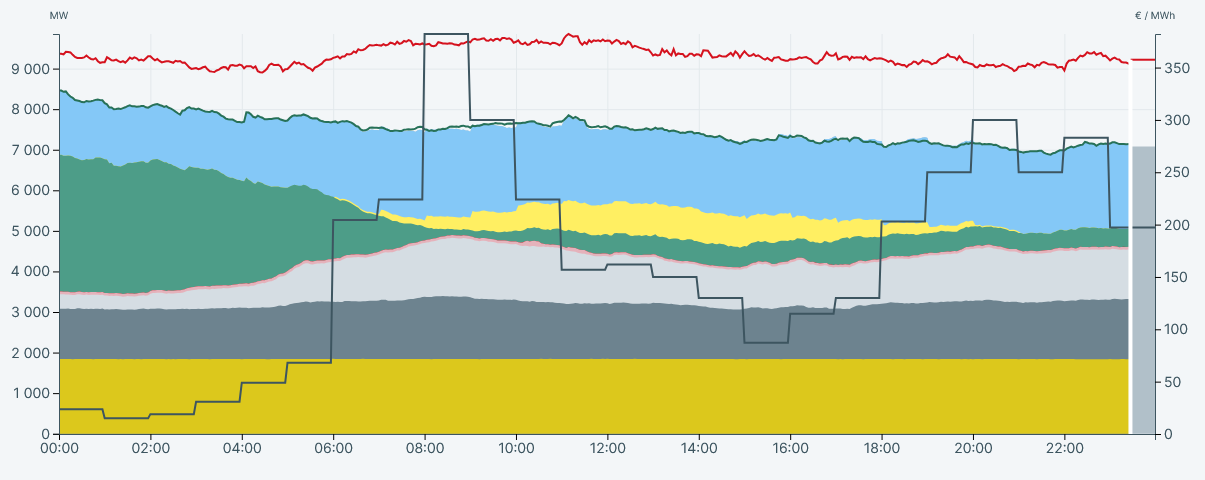 Sähkön ylituotantoa on valtavasti Saksassa, Hollannissa ja Puolassa (aurinkoenergiaa virtaa pohjoiseen). Iltapäivällä Saksassa hinta menee tosi tukevasti pakkaselle ja Hollannissa jopa parikymmentä senttiä per kWh! Jopa Ranskassa mennään pakkaselle. Virokin on melkoisen omavarainen tällä hetkellä (vaikka Puolasta tunkee sähköä).Tää on hauskaa. Kotimainen tuotanto on pakkasella enemmän kuin viimepäivien hintapiikkien aikaan ja nyt hinta on nyt nollissa. Eli jossain pitää olla ylituotantoa mikä dumpataan Suomeen?
