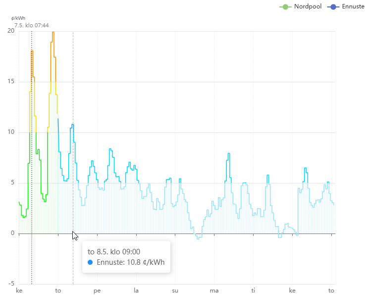 Huonoks näemmä menee kun huomenna on melko tasaiset hinnat. Minimi 8,18c ja maksimi 19,18c rennolla keskihinnalla 12,90cSyystä viis, täytyy olla vaan kiitolinen että hinnat heiluu. Hesarissa oli juttua että liian vakaa elämä ei ole hyväksi.