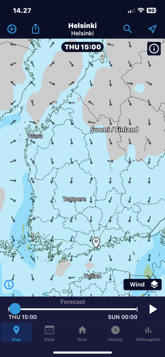 Eilen ennen 14:00 oli tuulta kuitenkin luvassa sen verran etten oikein ymmärrä näitä hintoja ottaen huomioon vuodenaika ja lämmitystarve.Forecan mukaan tuulta on vain iltapäivällä. https://www.foreca.fi/sahkon-hinta