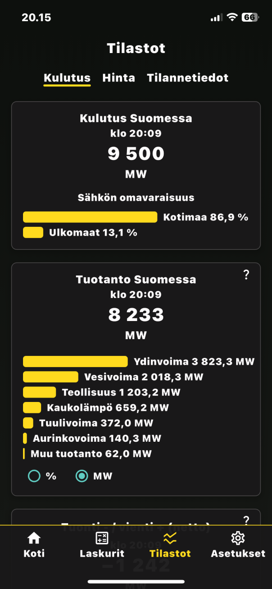 Kannattaa ehkä joskus tuijottaa muutakin kuin pelkästään Suomen käppyröitä. Aika nopealla vilkaisulla Nordpoolista näkee että hinnat on lähes täysin samalla tasolla Pohjoismaissa, Baltiassa ja Keski-Euroopassakin. Ei ole siis halpaa tarjolla mistään (edes Pohjois-Ruotsista), joten hinnat on mitä on. Huomennakin kalliiden hintojen aikaan SE1 ja SE2 painaa ihan samoissa hinnoissa, mikä lienee siellä suhteellisen harvinaista. Huomenna on siellä melko lailla nollatuulet, joten siellä otetaan vesivoimasta vaihteeksi vähän parempaa hintaa irti...Totta, mutta tässä lähiaikoina on usein ollut jopa yli 2000MW vajaus, ja silti hinnat olleet alhaisemmat.