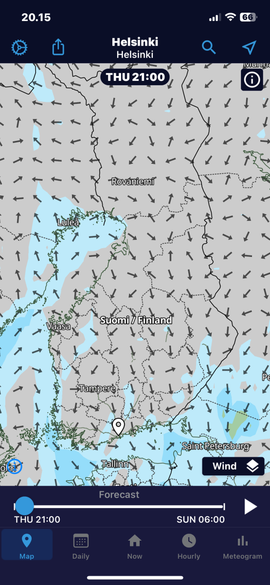 Forecan mukaan tuulta on vain iltapäivällä. https://www.foreca.fi/sahkon-hintaMiksi jo tänään on hinnat korkeat, vaikka tuulta oli luvassa?