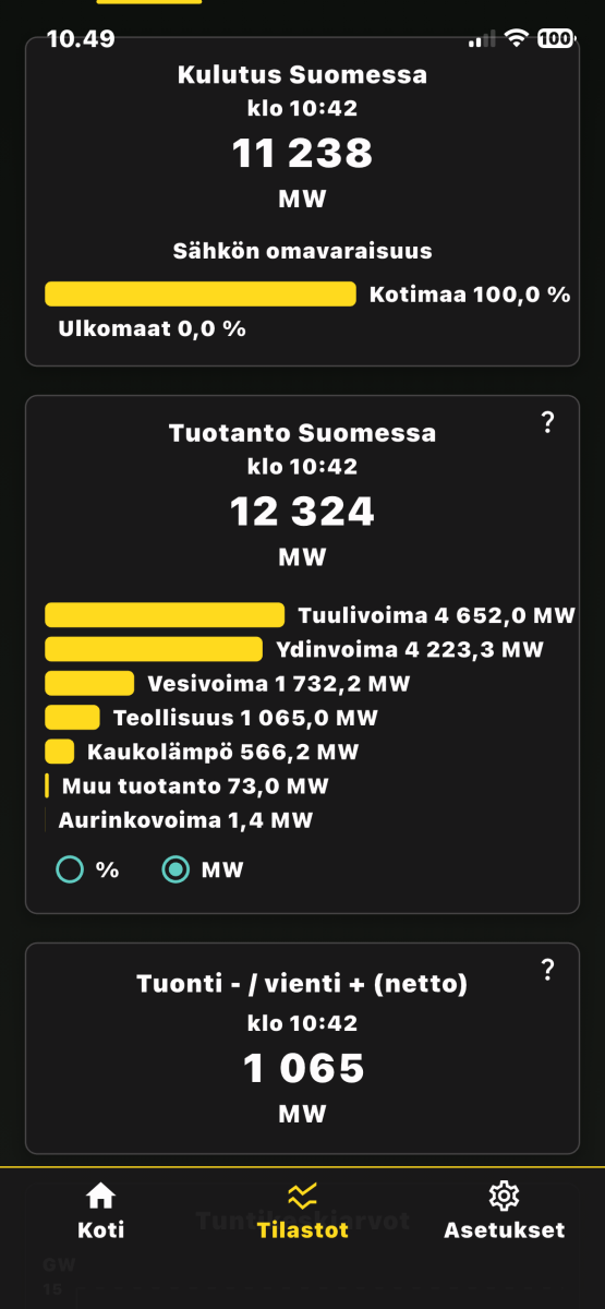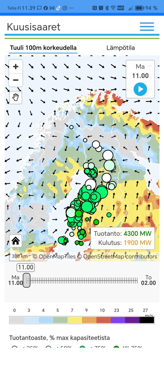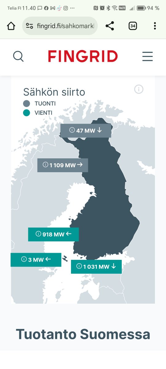 Miksi ei alkuvuonna vielä tällainen tilanne vaikuttanut näin korottavasti? Näillä tuulilla hinta oli aina 0-5 c/kWh. Tämä asia ihmetyttää.Erityisesti pohjois ruotsissa tyyntä mikä nostaa SE1 hinnan poikkeuksellisenkin kovaksi ja ollaan samassa hinnassa. Tässä tilanteessa pitäisi olla kotimaista tuotantoa vielä n. 3000mw lisää jotta saataisiin Aurora täyteen ja irtaannuttaisiin SE1 hinnasta