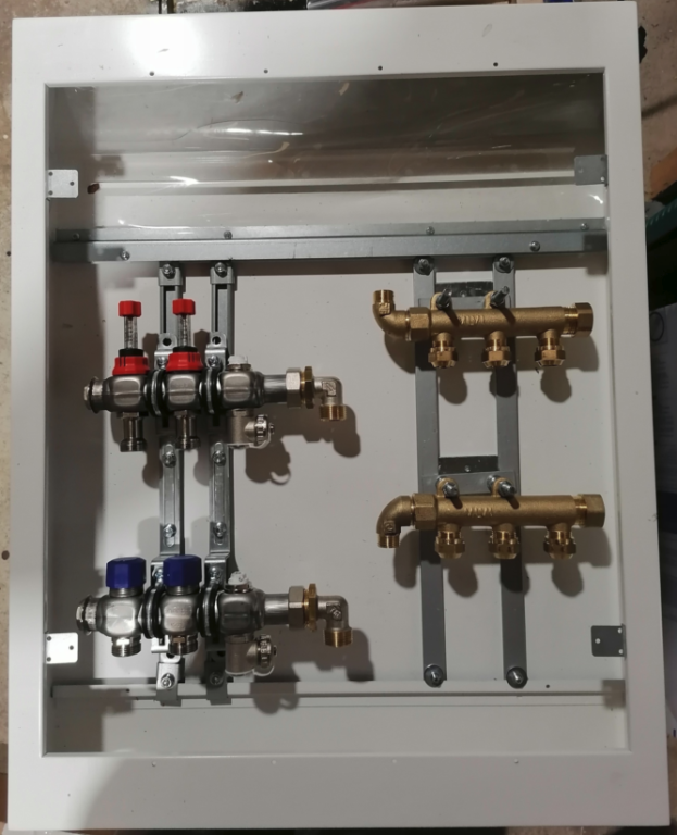 Tuohan on siisti.Mitä palstan lvi-kriitikot sanovat tästä. KH-remonttia varten esiasensin lämmityksen sekä käyttöveden jakotukit samaan vesitiiviiseen jakotukkikaappiin, jonka heitän sitten aikanaan seinän sisään. Keksiikö kukaan mitään toiminnallista syytä tai onko putkarin kannalta väliä miten nuo tuolla on? Itse ajattelin että kunhan työkalut mahtuvat väliin. Lämmin käyttövesi tulee ylhäältä, koska yläkaappiin on tarkoitus sijoittaa se pieni puskurivaraaja, jota toisessa ketjussa kyselin. Ehkä sen tukin voisi kääntää toisin päin, ei tarvitsisi rei'ittää ainakaan keskeltä tuota roiskesuojaa, joka kaapissa on (näkyy vähän huonosti).