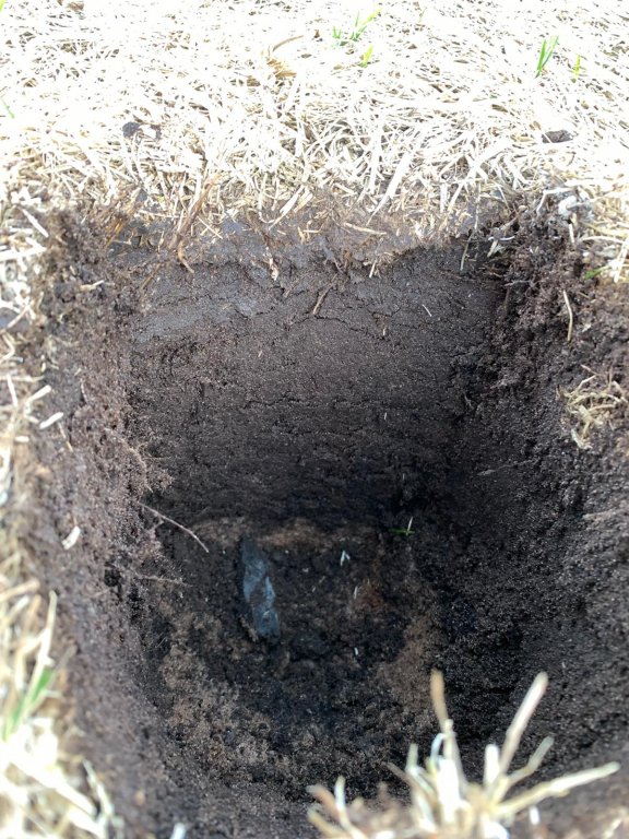 Asuttu vasta vajaa vuosi niin ei vielä tunne tontin temppuja. Parit poraukset tuli puukolla tehtyä ja näytti olevan mullan seassa pientä kiveä. Noin 10cm multaa ja sen alla jonkunlaista hiekan sekasta maata. Vois kaivaa lapiolla testireiän. Itekkin epäilin että oisko liian tiivis maa mutta vähän sitä kyllä epäilen. 2015 tehty nurtsi ja talo.