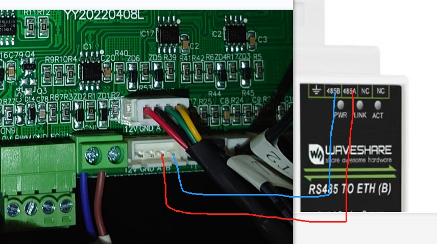 Eipä tuo modbus toimi tuossa kohdassa. Kierretyllä parilla, A-B ja B-b kytketty. Joshto piipattu ja kunnosaa ( 1m johtoa , varmistettu silti).
