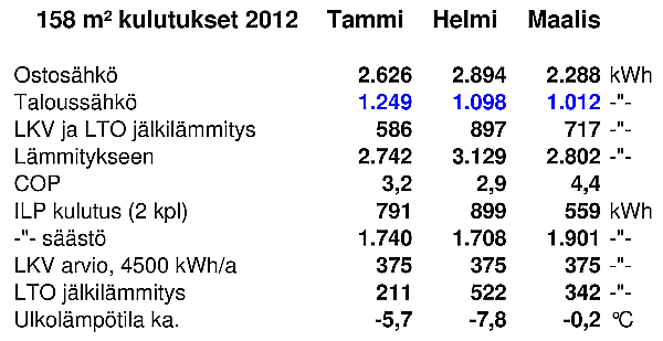 Ei voi olla todellista, ennen ilp:ä mennyt siis ostoenergiaa 4189kWh/kk(Kulutus nyt 2288kWh+säästö 1901kWh) kun kuukauden keskilämpötila 0astetta :eek: