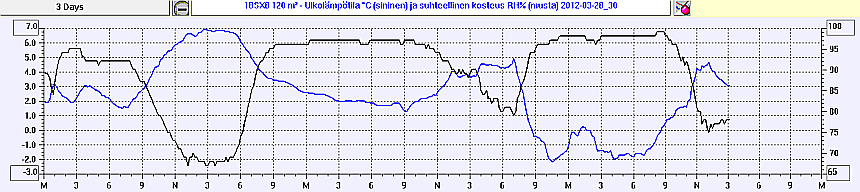 • Ulkolämpötila ja suhteellinen kosteus 2012-03-28_30 (3 vuorokautta).png