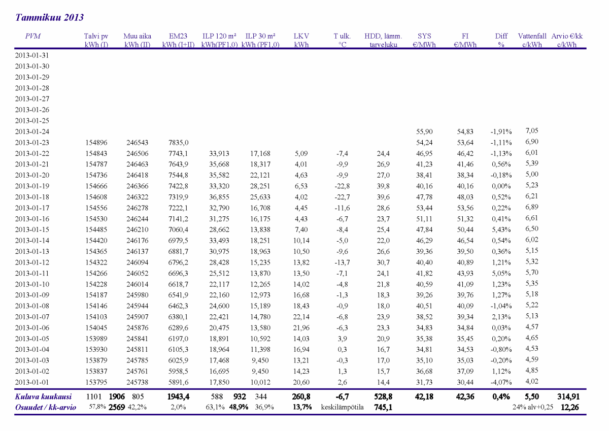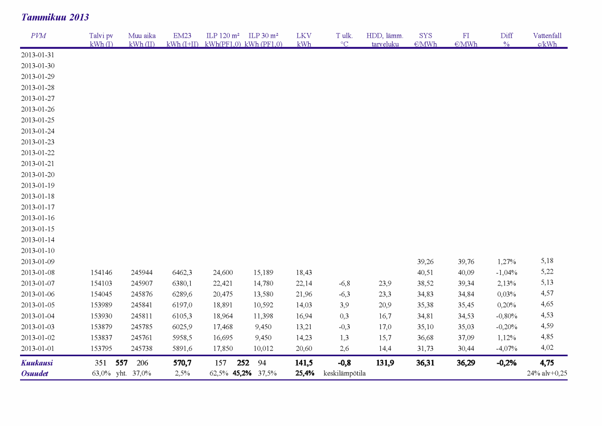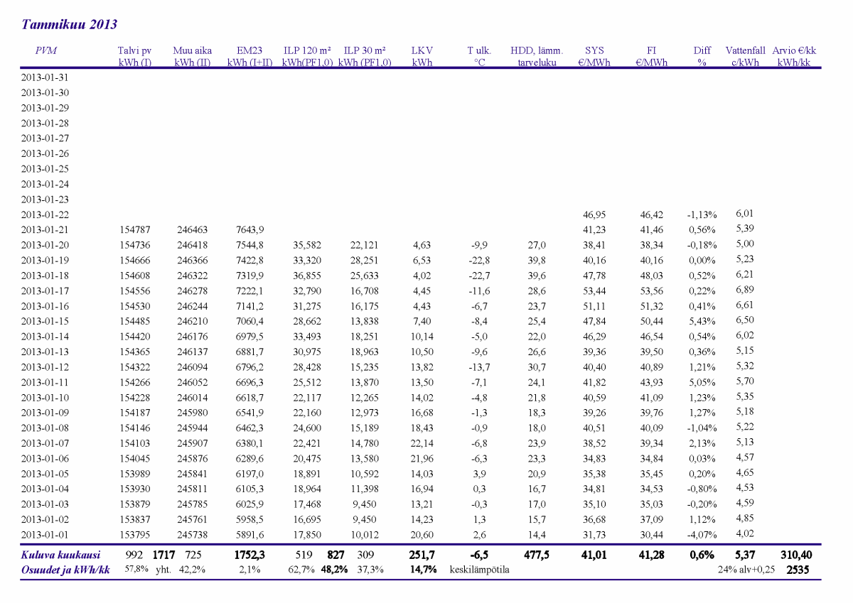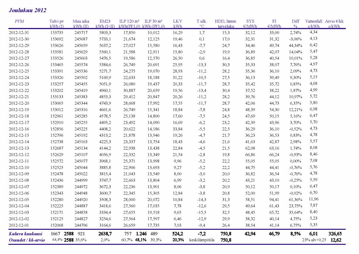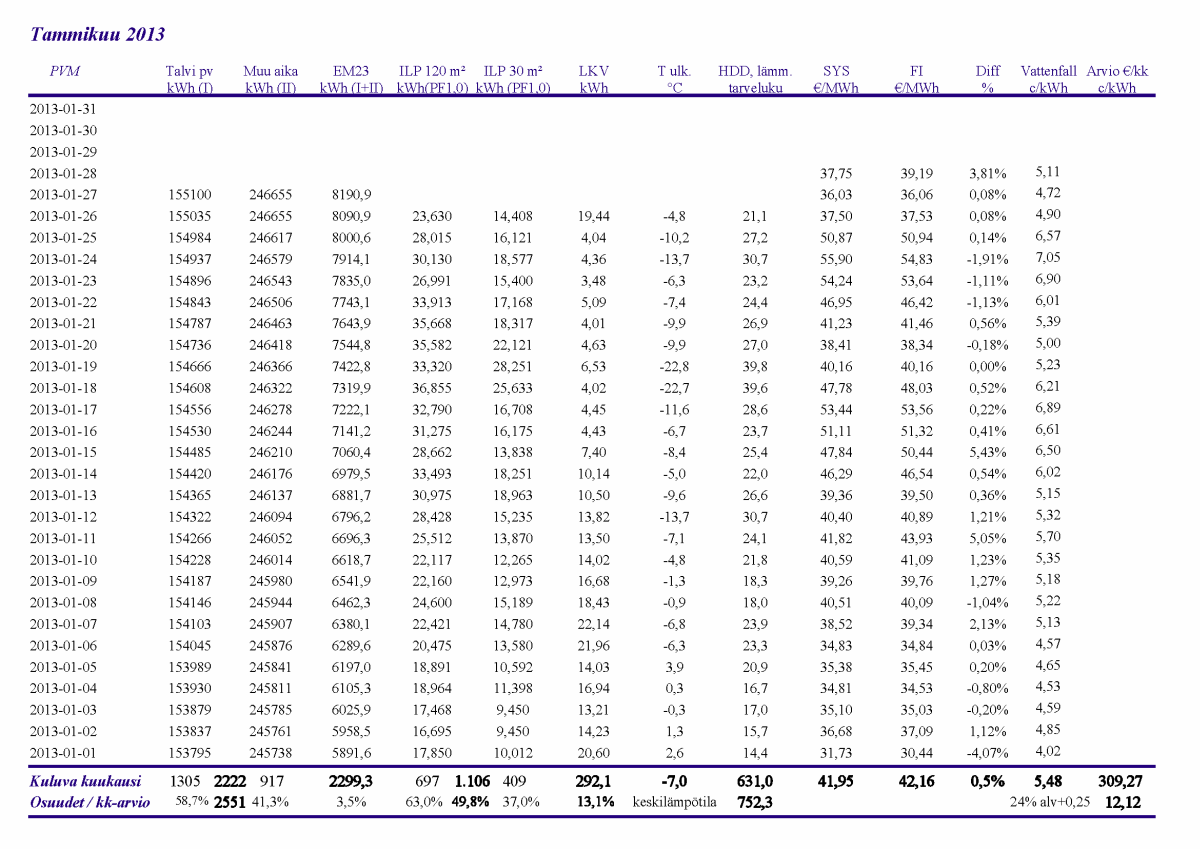 Pikkupakkasilla mennään tasaisesti sulatellen. Pienemmällä lämpötilapyynnillä (Auto +2) putosi puhalluslämpötila ja imulämpötila aluksi tietenkin enemmän ja asettui jatkossa ulkolämpötilan mukaan. Puhallus on nyt ihan sopiva Auto asetuksella. 24 tunnin keski-ottoteho oli koko mittausjaksolle 883W ja ulkona -4,0 C.