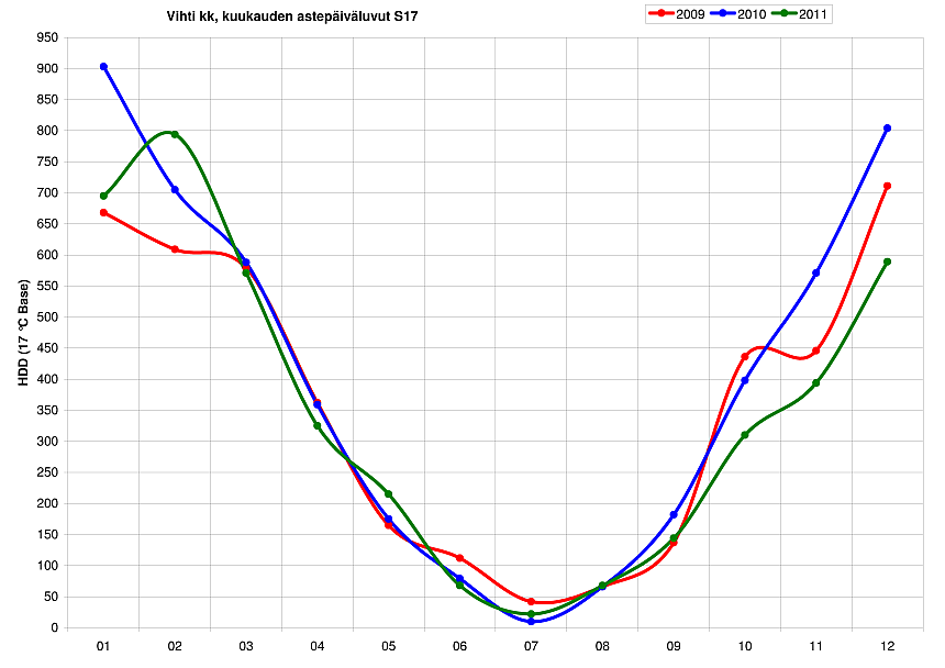 Liitteenä vaihteeksi kuukausittaista astepäivälukua kolmelta viimeiseltä vuodelta oman sääaseman mittaamana. :)